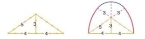 ويكون الخط الواصل من أي زاوية من زوايا المثلث إلى منتصف الضلع المقابل هو عمودي عليه. ولكن الأصل في تصميم المباني القديمة هو مثلث ٣:٤:٥ بالحبل المصري، يُلف الحبل حول ثلاثة أوتاد لتشكيل ثلاثة أضلاع بأطوال ثلاثة وأربعة وخمسة وحدات، فتتشكل زاوية قائمة ٩٠° بين الضلعين الثالث والرابع.