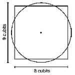 - • ومساحة الدائرة المربعة التي طول ضلعها ٨ أذرع = ٦٤