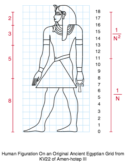 نظرًا للعلاقة الوثيقة بين متسلسلة الجمع والنسبة الذهبية نجد أن أجزاء الشكل المختلفة تتبع أيضًا متسلسلة الجمع (كما هو موضح في الشبكة الأصلية أعلاه من مقبرة KV22 لأمنحتب الثالث).