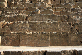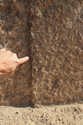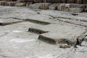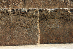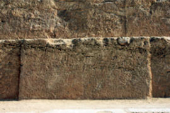و. الخطوط المتموجة في الأحجار الضخمة تدل على فترات توقف الصب (طوال الليل مثلاً)، حيث يتشكل خط متموج بين صبة وأخرى.