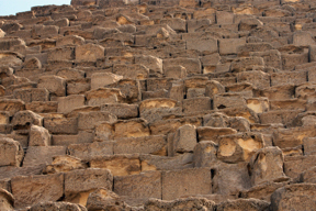صُممت الأحجار الخارجية لمقاومة العوامل الطبيعية؛ لذلك صُنعت من أحجار أكثر صلابة كما نرى في هذه الصورة لهرم خفرع بالجيزة.