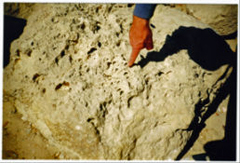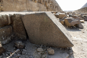 إن نظرة فاحصة على أحجار الأهرامات - مثل هذه الأحجار – تظهر أن الطبقات العلوية للعديد منها مليئة بالثقوب، تبدو الطبقات متآكلة كالإسفنج، أما الطبقة السفلية الأكثر كثافة فلم تتآكل.