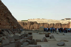 بما أن الأرضية الأصلية لهرم خفرع كانت منحدرة كان من الضروري تسويتها لبناء قاعدة الهرم، فقام المصريون بقطع الأرض لتسويتها لتصلح قاعدة للهرم.